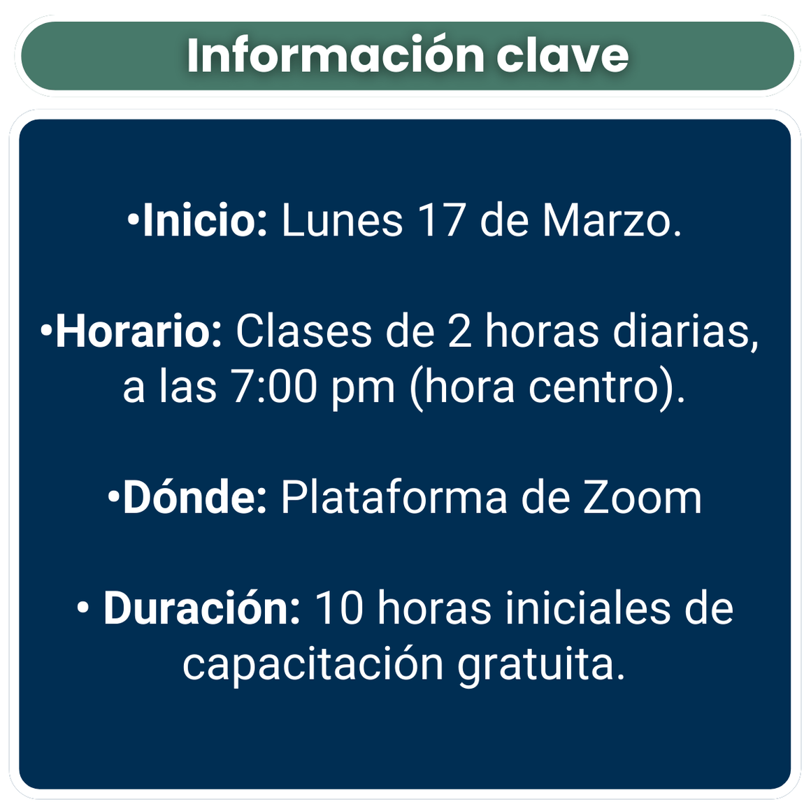 En solo 10 horas, accede a simuladores de competencias, pruebas psicométricas y un diagnóstico de nivel de inglés para potenciar tu crecimiento.